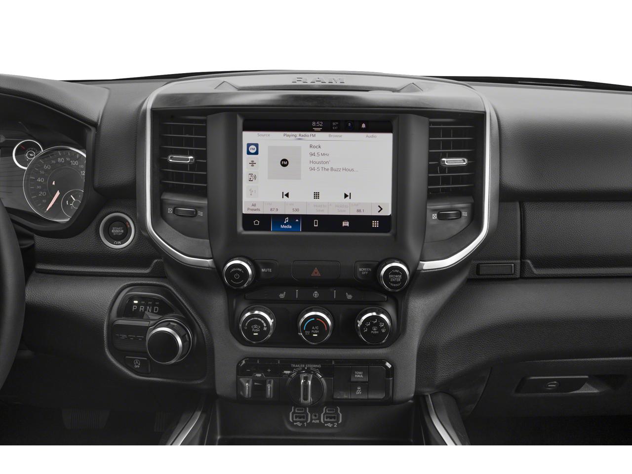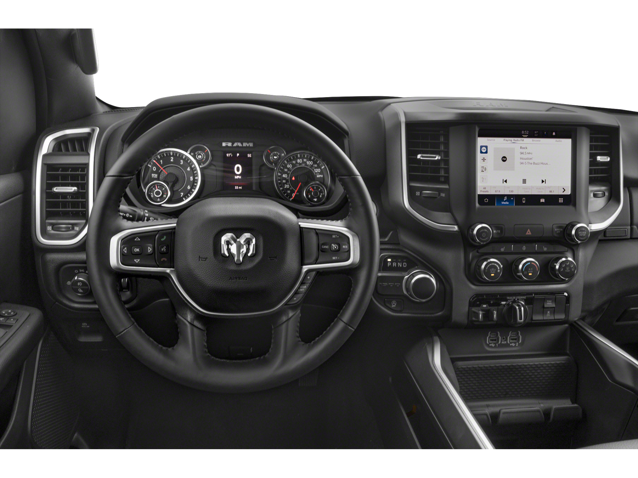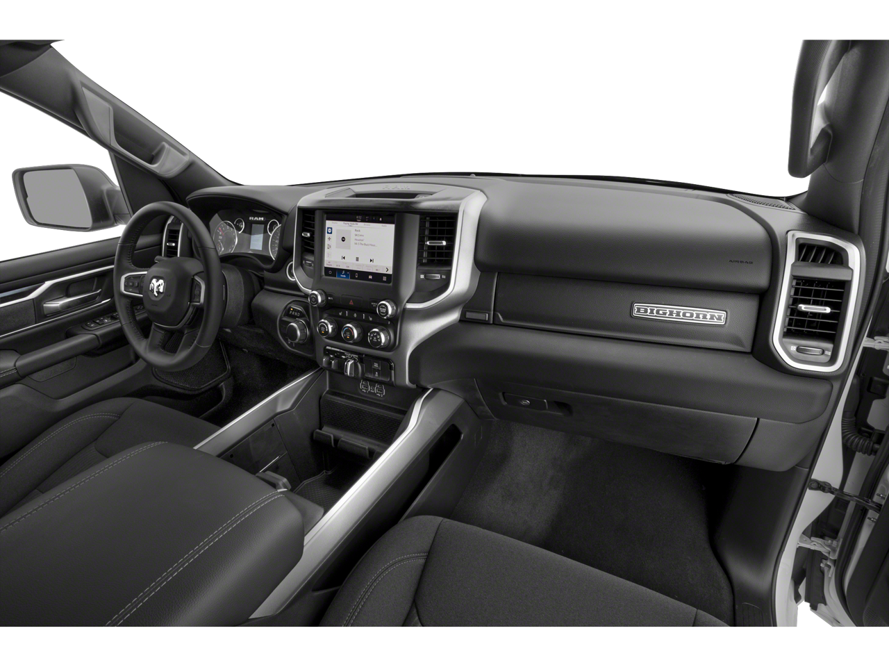 Big Horn Level 1 Equipment Group (2nd Row In Floor Storage Bins, 4G LTE Wi-Fi Hot Spot, Apple CarPlay, Auto-Dimming Exterior Driver Mirror, Auto-Dimming Rear-View Mirror, Black Premium Power Mirrors, Bluetooth® Handsfree Phone & Audio, Class IV Receiver Hitch, Connectivity - US/Canada, Convex Wide-Angle Exterior Mirror Insert, Electric Shift-On-Demand Transfer Case, Exterior Mirrors Courtesy Lamps, Exterior Mirrors w/Heating Element, Exterior Mirrors w/Supplemental Signals, For Details, Visit DriveUconnect.com, For More Info, Call 800-643-2112, Front Fog Lamps, Global Telematics Box Module (TBM), Glove Box Lamp, Google Android Auto, Heated Front Seats, Heated Steering Wheel, Passenger Sun Visor w/Illuminated Mirror, Power-Folding Mirrors, Radio: Uconnect 5 W w/8.4 Display, Rear Dome w/On/Off Switch Lamp, Rear Power Sliding Window, Rear Window Defroster, SiriusXM Radio Service, SiriusXM Satellite Radio, and USB Host Flip), Off Road Group (E-Locker Rear Axle, Front Extra HD Shock Absorbers, Off Road Decals, Raised Ride Height, Rear Extra HD Shock Absorbers, Selec-Speed (TM) Control, and Tow Hooks), Quick Order Package 27Z Big Horn (Big Horn Badge), 3 Rear Seat Head Restraints, 3.21 Rear Axle Ratio, 4 Way Front Headrests, 4-Wheel Disc Brakes, 48V Belt Starter Generator, 6 Speakers, ABS brakes, Air Conditioning, Alloy wheels, AM/FM radio, Brake assist, Bumpers: chrome, Cloth Bench Seat, Compass, Delay-off headlights, Driver door bin, Dual front impact airbags, Dual front side impact airbags, Electronic Stability Control, Emergency communication system: RAM Connect, Front anti-roll bar, Front Center Armrest w/Storage, Front License Plate Bracket, Front reading lights, Front Seat Back Map Pockets, Front wheel independent suspension, Fully automatic headlights, Heated door mirrors, Illuminated entry, Integrated Voice Command w/Bluetooth®, Leather steering wheel, Low tire pressure warning, Occupant sensing airbag, Outside temperature display, Overhead airbag, Overhead console, Panic alarm, ParkView Rear Back-Up Camera, Passenger door bin, Passenger vanity mirror, Power door mirrors, Power steering, Power windows, Radio data system, Radio: Uconnect 3 w/5 Display, RAM Grille Badge - Chrome, Rear 60/40 Folding Seat, Rear anti-roll bar, Rear seat center armrest, Rear step bumper, Remote keyless entry, Remote Start System, Speed control, Split folding rear seat, Steering wheel mounted audio controls, Tachometer, Telescoping steering wheel, Tilt steering wheel, Traction control, Trailer Brake Control, Trip computer, Variably intermittent wipers, Voltmeter, and Wheels: 18 x 8 Cast-Aluminum PainteD. Recent Arrival!